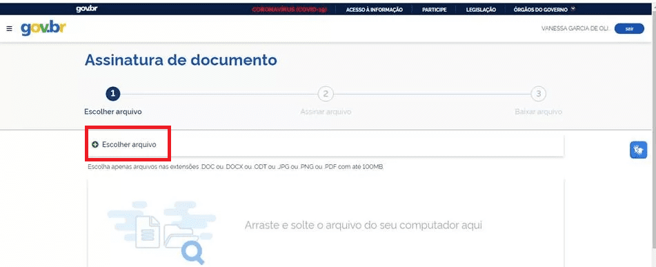 Após colocar todos os documentos necessários, clique em ASSINAR;