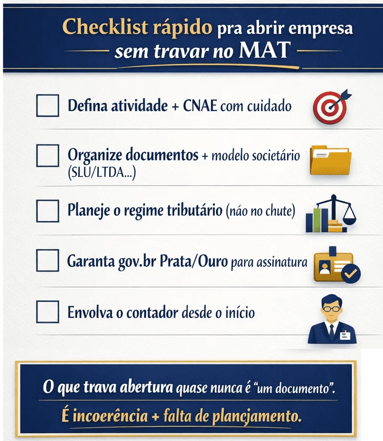 Quer abrir seu CNPJ com segurança e sem surpresas no novo fluxo do MAT?